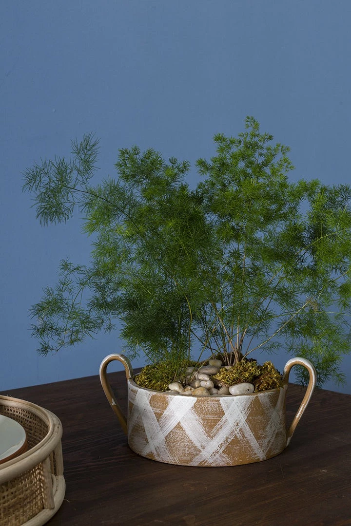 Each piece in the Levy Collection features dark clay and a hand-painted white glaze that lets its natural texture show through. Beyond the stunning two-toned design, the Levy Bowl is food-safe and features over-sized handles for a unique yet functional flourish.