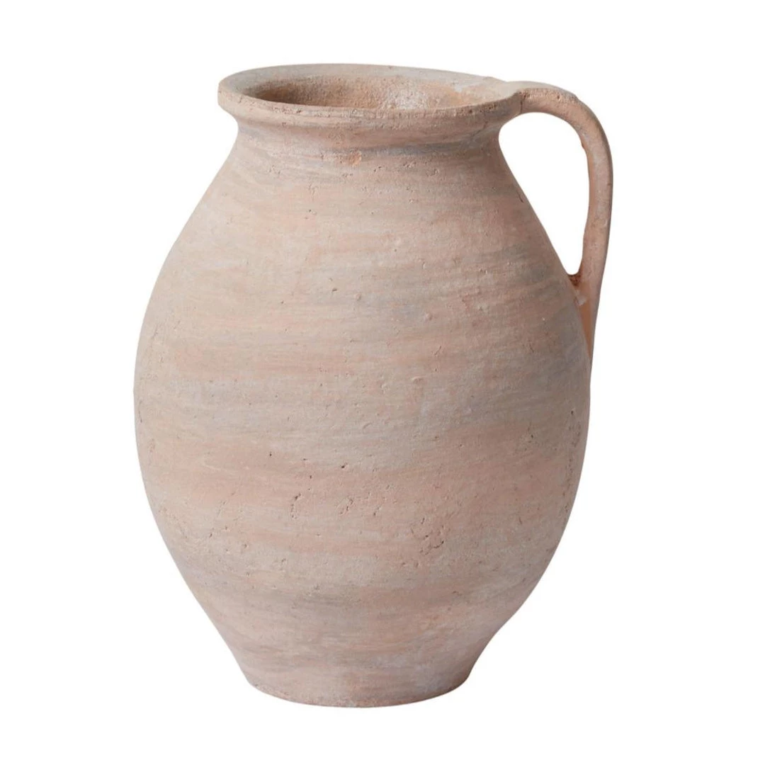 Sculptural and inspired by the most beautiful ancient pottery, the Anata Jug features a jug-shaped silhouette and a perfect patina in handcrafted terra-cotta. Use it for flowers or let the Anata Jug stand alone as a piece of art.