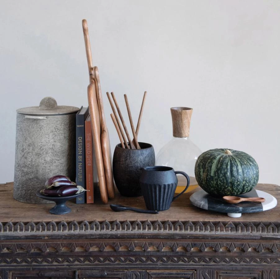 This creamer is perfect for adding a bit of style to your morning routine. Made out of stoneware, this creamer features a reactive glaze with a sleek, matte black finish. Adds sophistication and sleekness to any countertop.