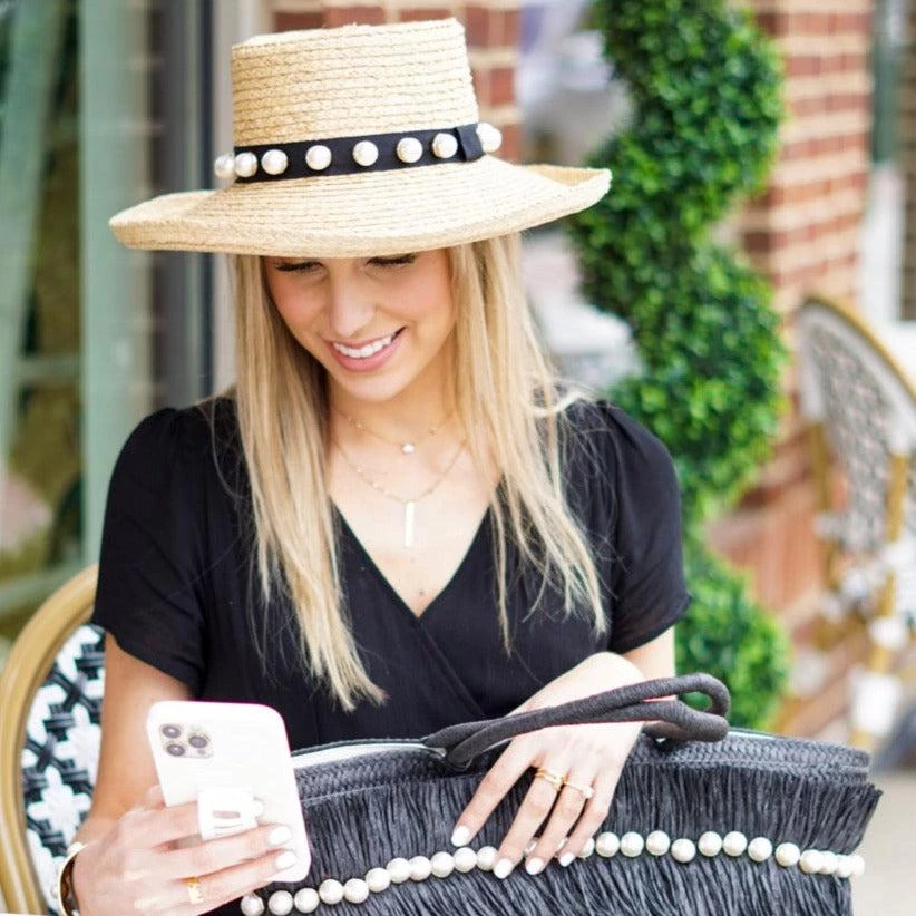 Pretty pearl baubles embellish the ribbon around the crown of the wide-brimmed straw body of the Steph Pearl hat making it a statement piece that will elevate any outfit.