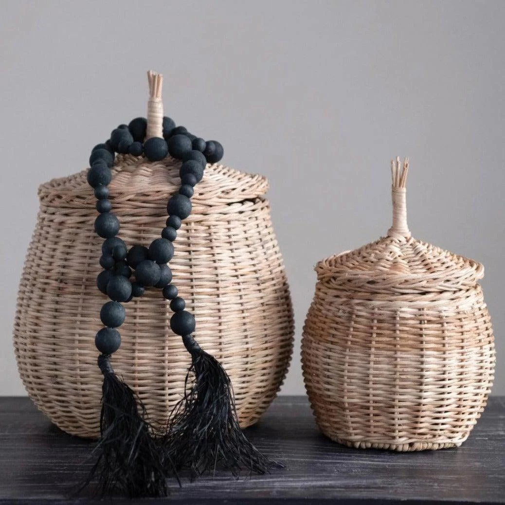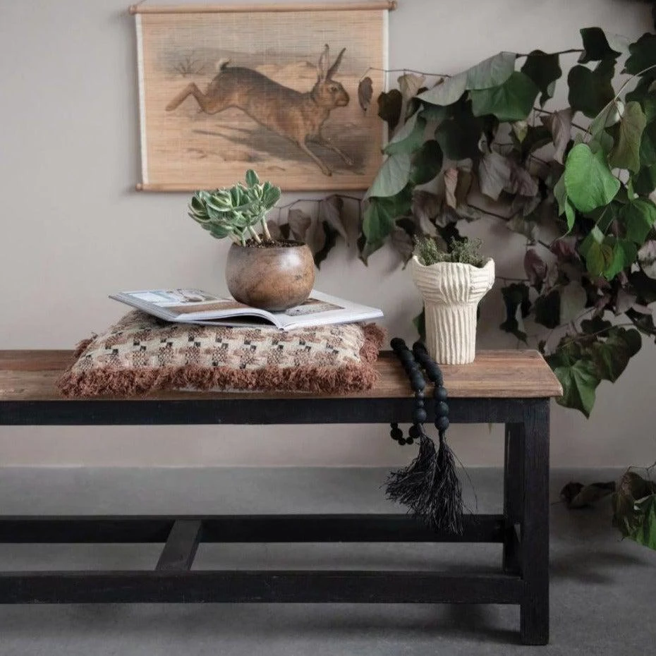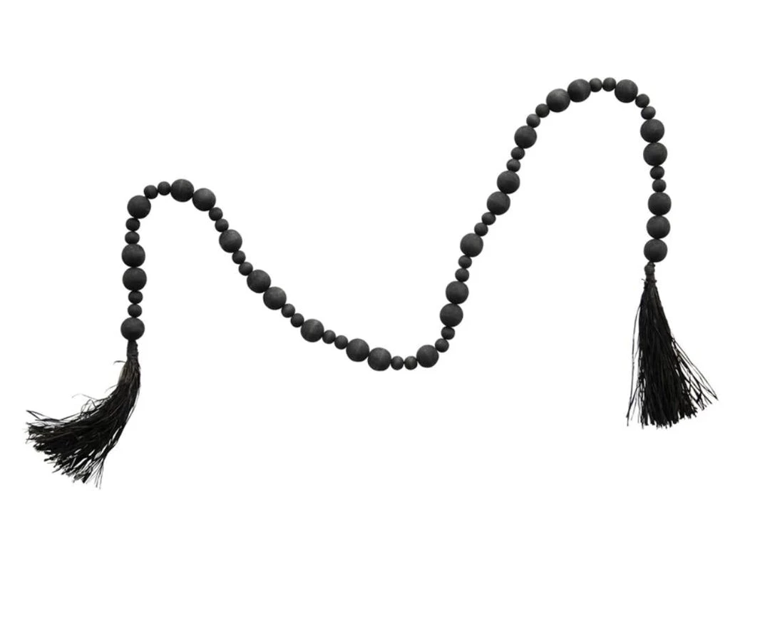 This alluring and bold Acacia wood bead garland with raffia tassel will be a handsome addition to your decor. Natural and eclectic this garland will be a unique accent or accessory for many home decor displays and styles.