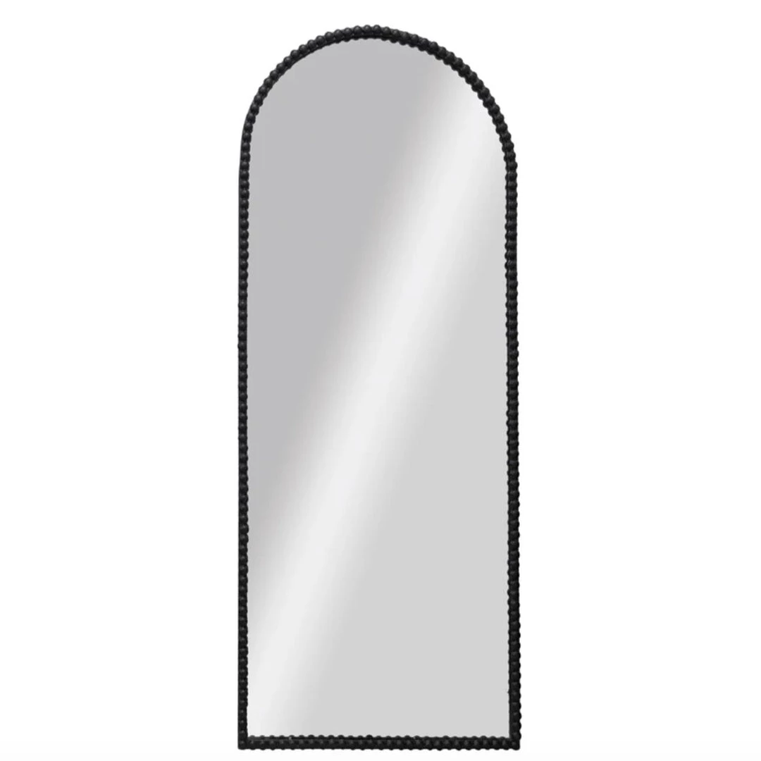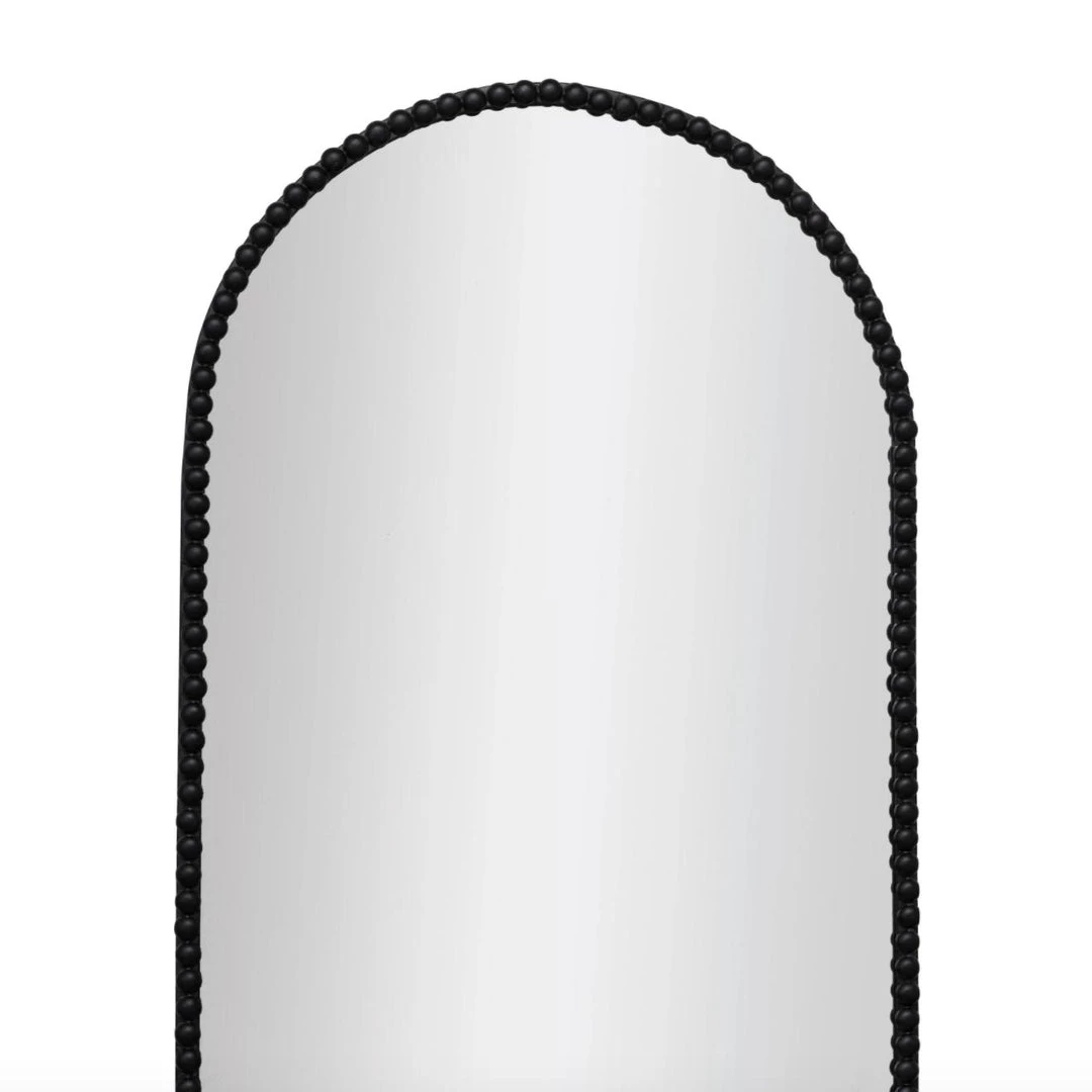 This black arched mirror features a beaded metal border, making it the perfect modern touch to your home! Use as a leaning mirror, or hang with the hooks and hardware, either way you’re sure to make a statement with this floor length mirror.