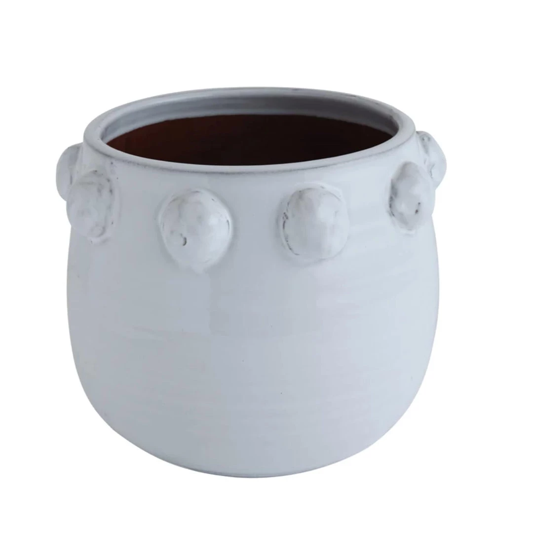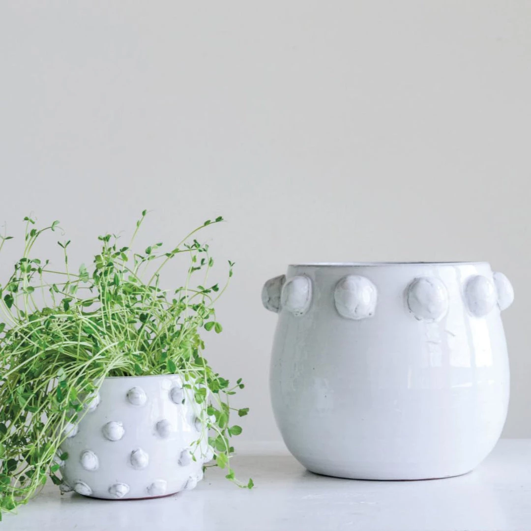 Planters are just as important as the plants they hold. They add that extra needed charm to your room decor and show your sense of style. This white planter with bubble designs is perfect for brightening a room or office.