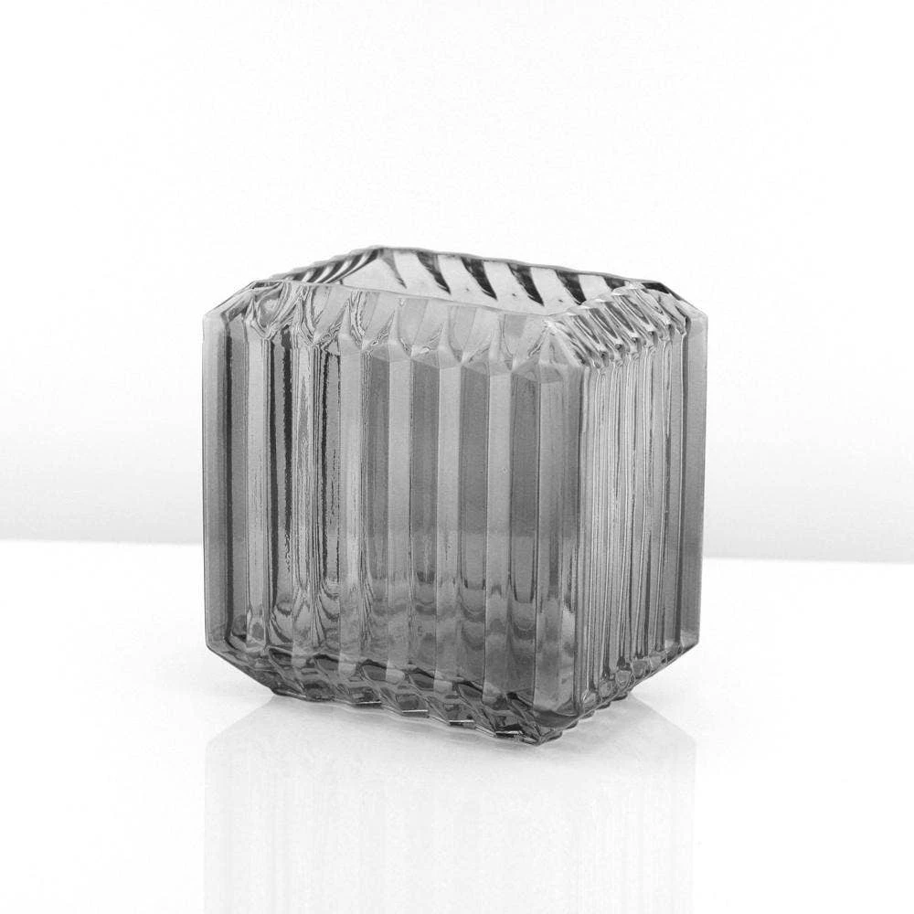 Whether you choose Clear or Smoke color these multidimensional pots are sure to bring a luxurious style to your home. The faceted glass give these a unique look sure to stand out on a coffee table or in an entryway.