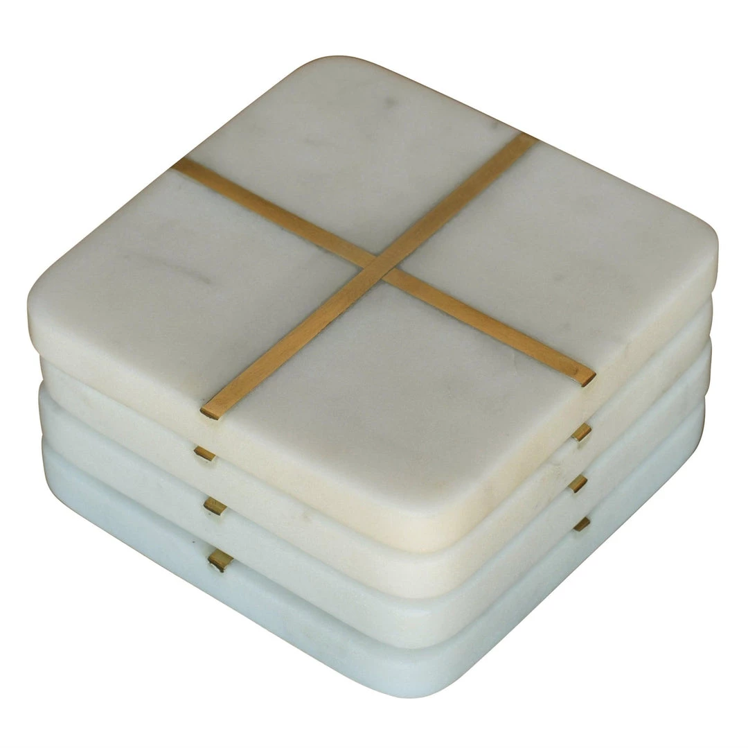 This set of 4 white marble and brass coasters are a gorgeous addition to your bar or living room and they offer your furniture protection from drink rings. Each coaster will comfortably hold wine glasses, coffee mugs, tumblers, you name it!