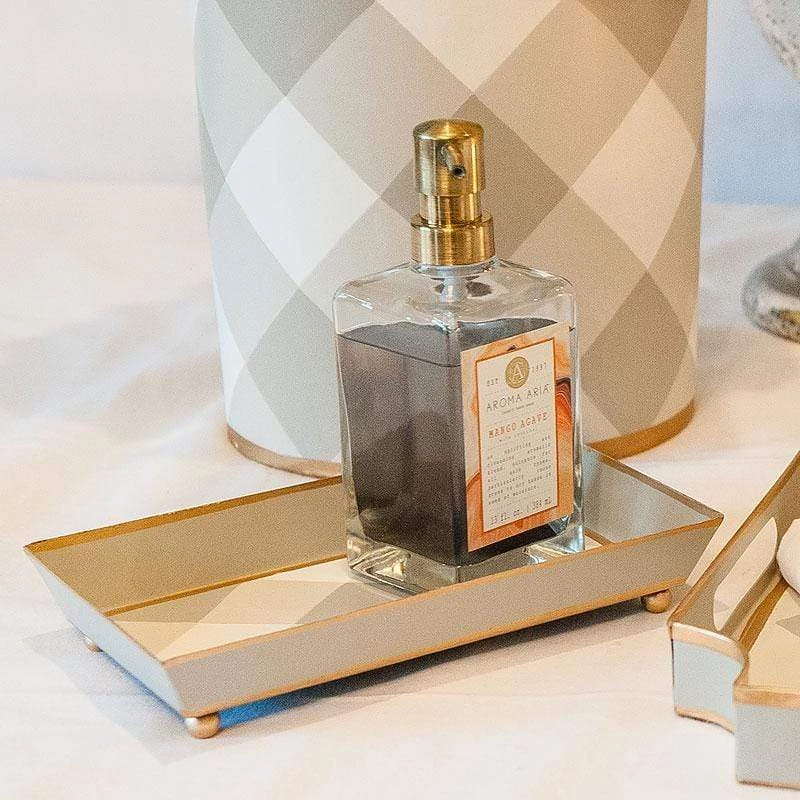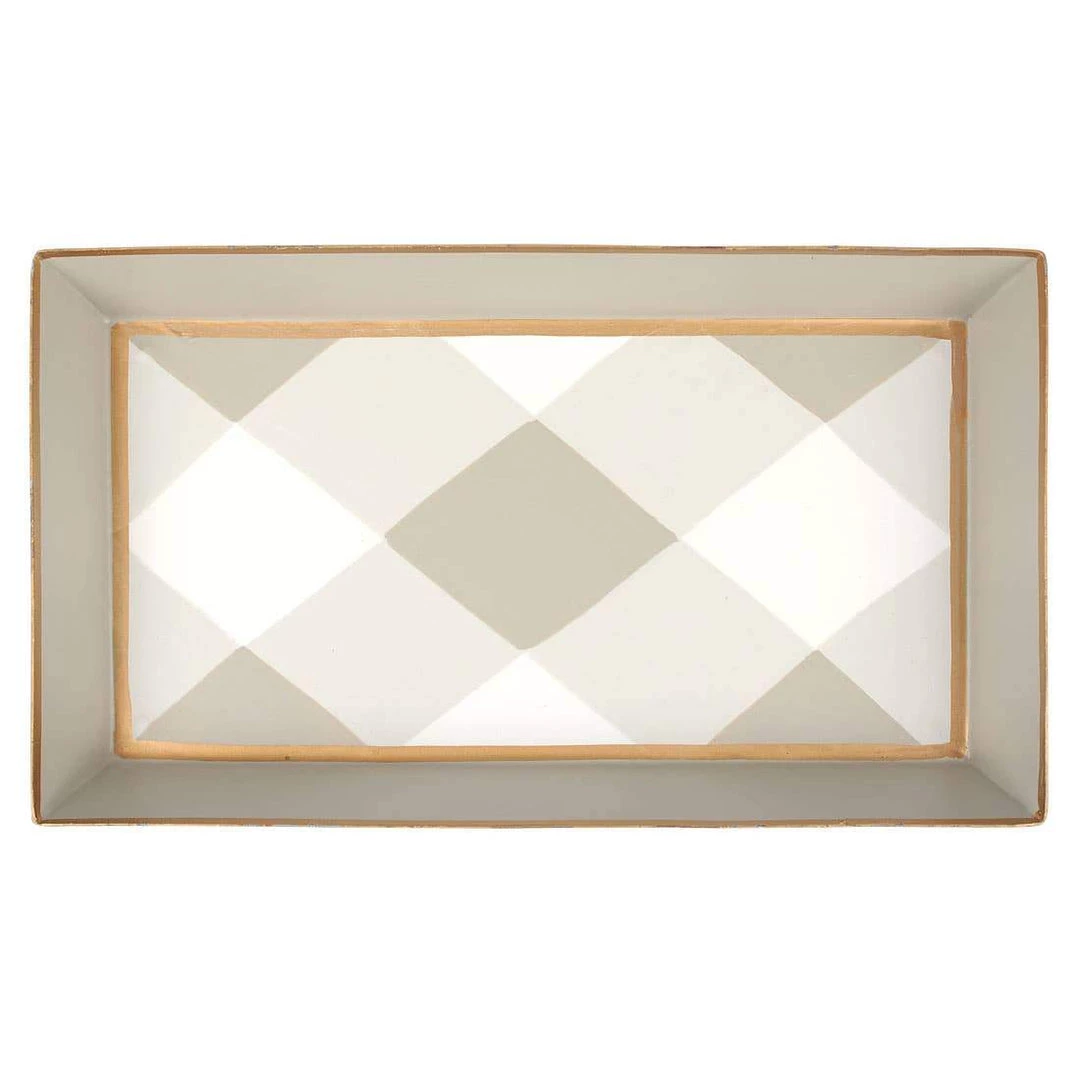 Gold accents shimmer against the buffalo plaid pattern of this towel tray to bring a touch of elegance to any bathroom. This hand-painted tray is the perfect way to organize towels for your guests in style.