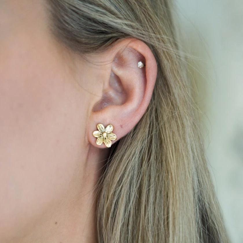 Just the right size for everyday wear, our gold-plated daisy stud earrings add a quaint, feminine flourish to your look.