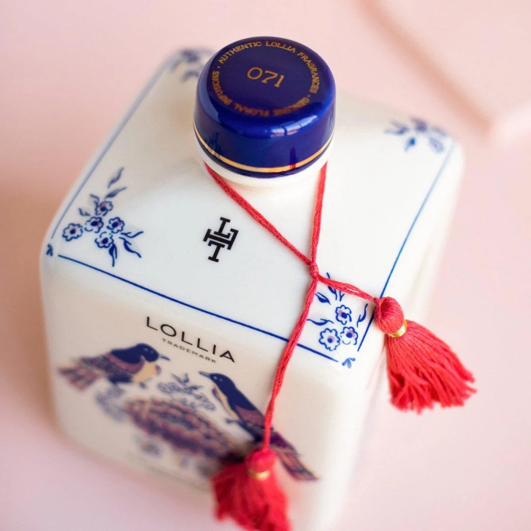 An irresistible beauty, striking songbirds perch amid a dreamy chinoiserie-inspired garden scape on this sophisticated glazed ceramic bottle. Accented with a signature Lollia tassel for a beautiful tub-side addition long after the bubbles have disappeared.