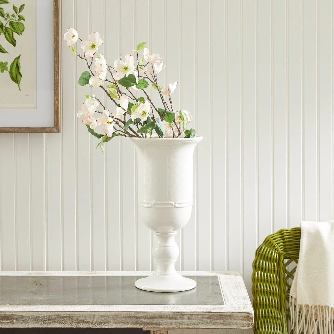 Making a real statement in your home, this Mirabelle Grande Pedestal Urn is fashioned in classic Italian style. Made of clay, with a smooth muted white glazed finish, it is a beautiful addition to any traditional to transitional space. **Note: for decorative use only.