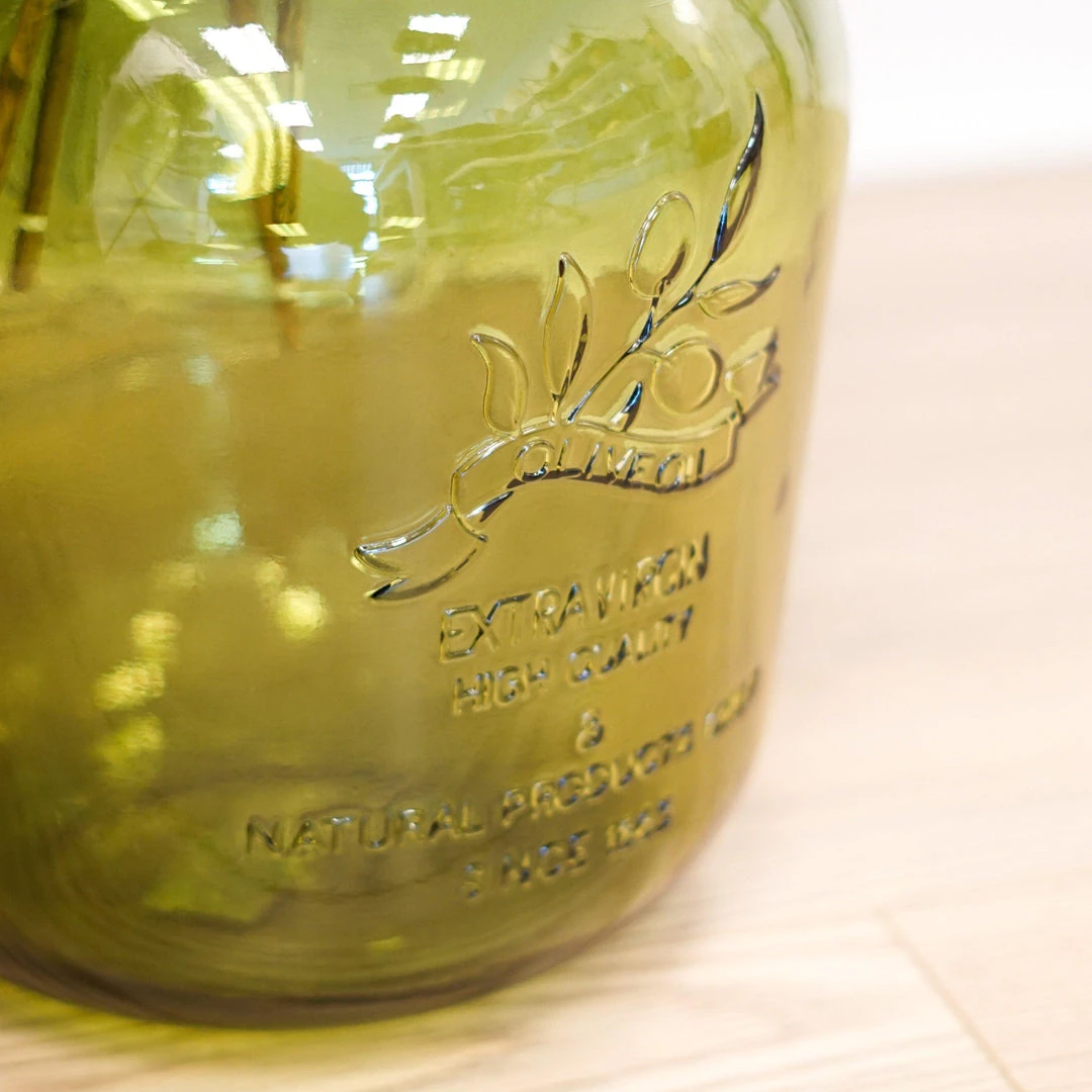Made in Spain using recycled glass, this beautiful bottle adds a rich olive green accent to your décor. Place on a tray with some wood beads and olive stems for a rich, Mediterranean-inspired look.