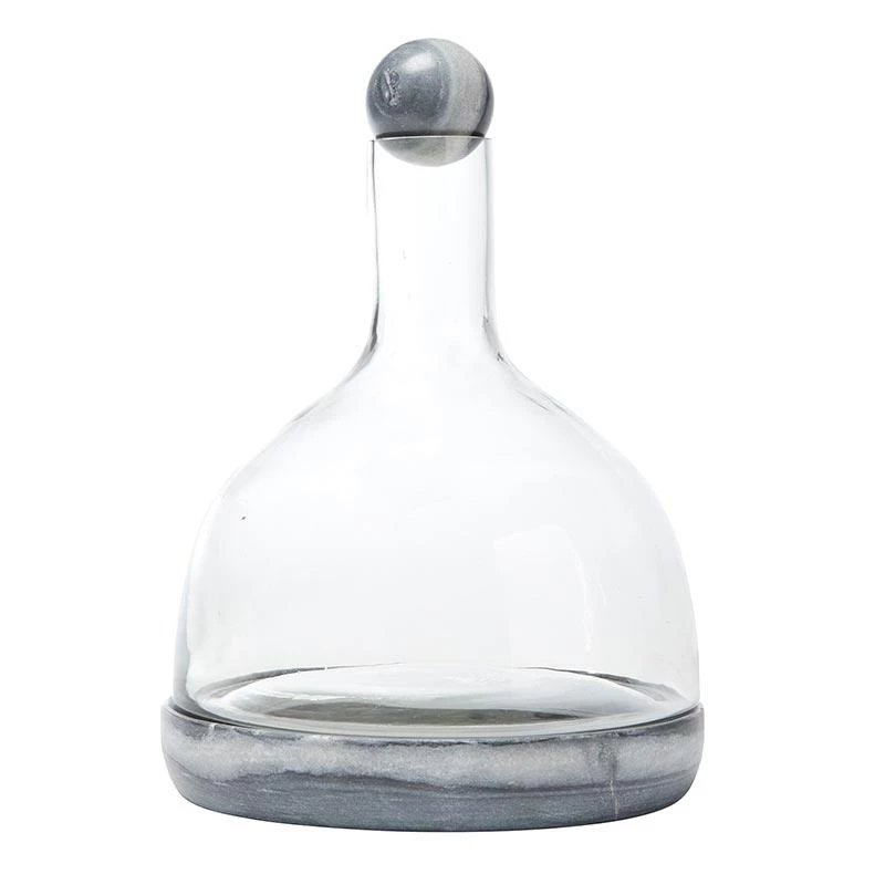 Glass carafe’ with classic marble topper and base, provides style and functionality to any wine night. Chill the marble base in the freezer ahead of time, to keep your favorite wines chilled!