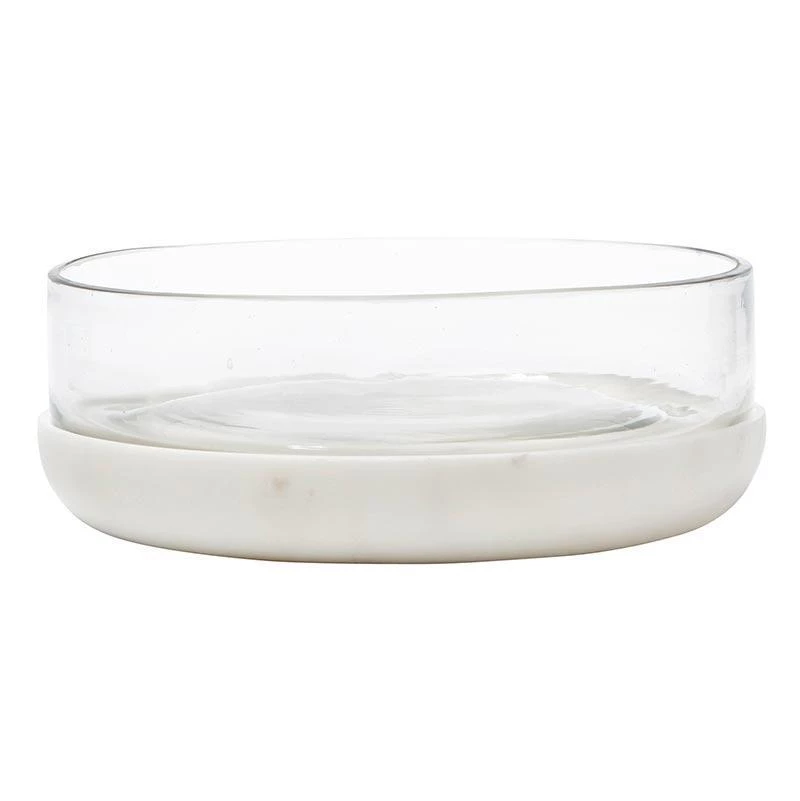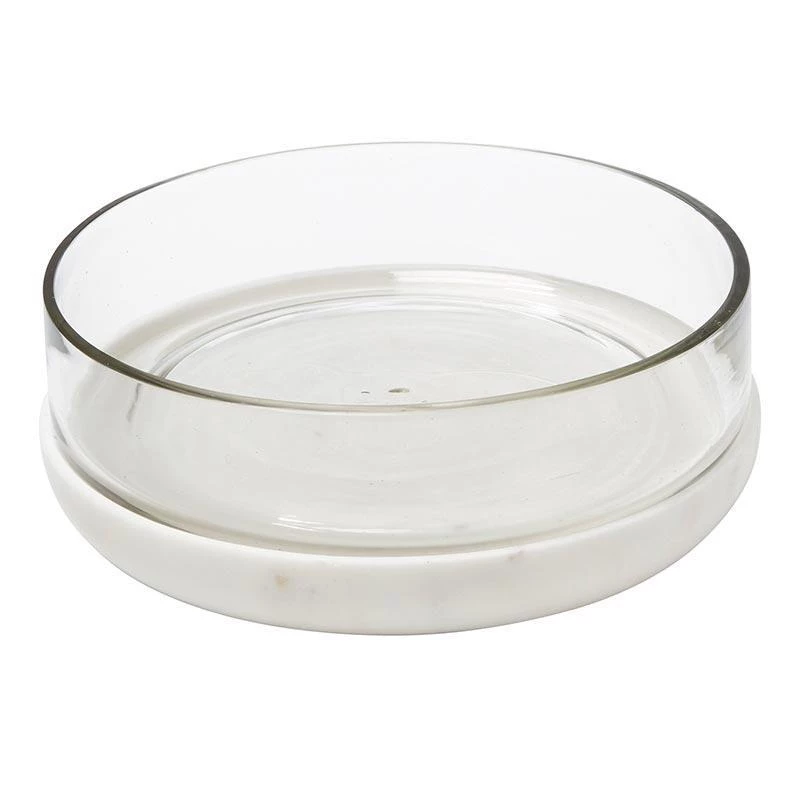 Glass bowl sits atop minimal and classic marble base bringing style and elegance to your favorite dips and snacks. Chill the marble base in the fridge or freezer ahead of time, to keep treats fresh and cool!