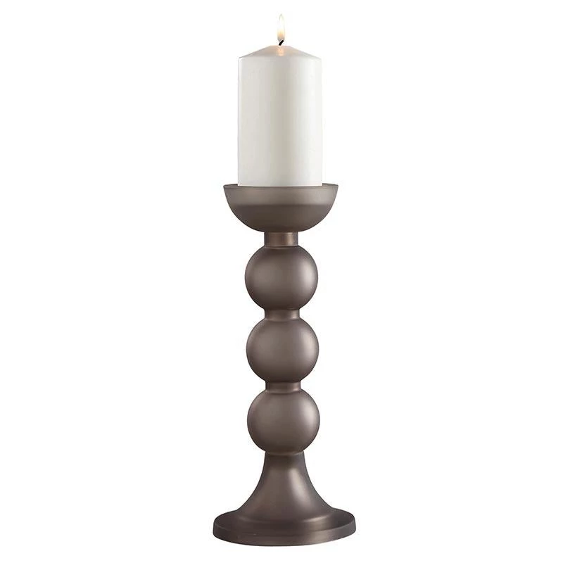 This modern candle holder in matte grey finish features a decorative shape. A beautiful art meets functionality. Beautiful as a stand alone piece, can be arrayed in a group for a collective look.