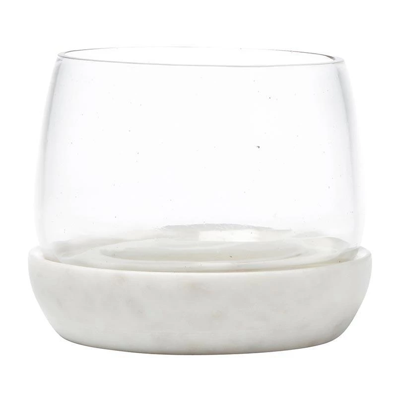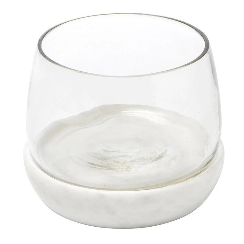 Glass bowl sits atop minimal and classic marble base bringing style and elegance to your favorite dips and snacks. Chill the marble base in the fridge or freezer ahead of time, to keep treats fresh and cool!