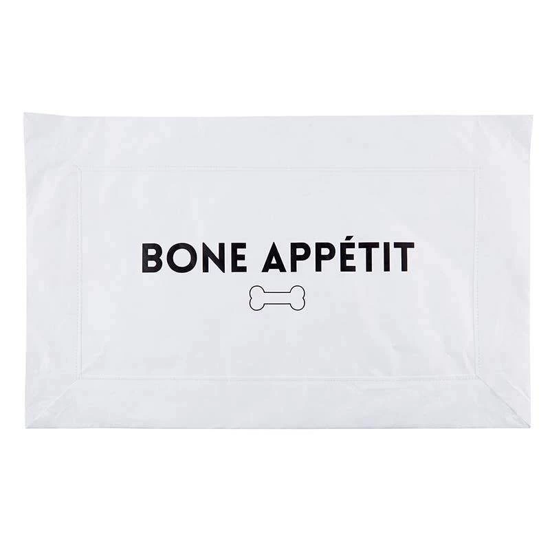 No more wet floors. Place a tyvek mat under your pet’s food and water dishes for a clean look. After all, they should use their manners when the come to the table. Easy to wipe clean, durable, tear-resistant. Features the phrase: Bone Appetit.