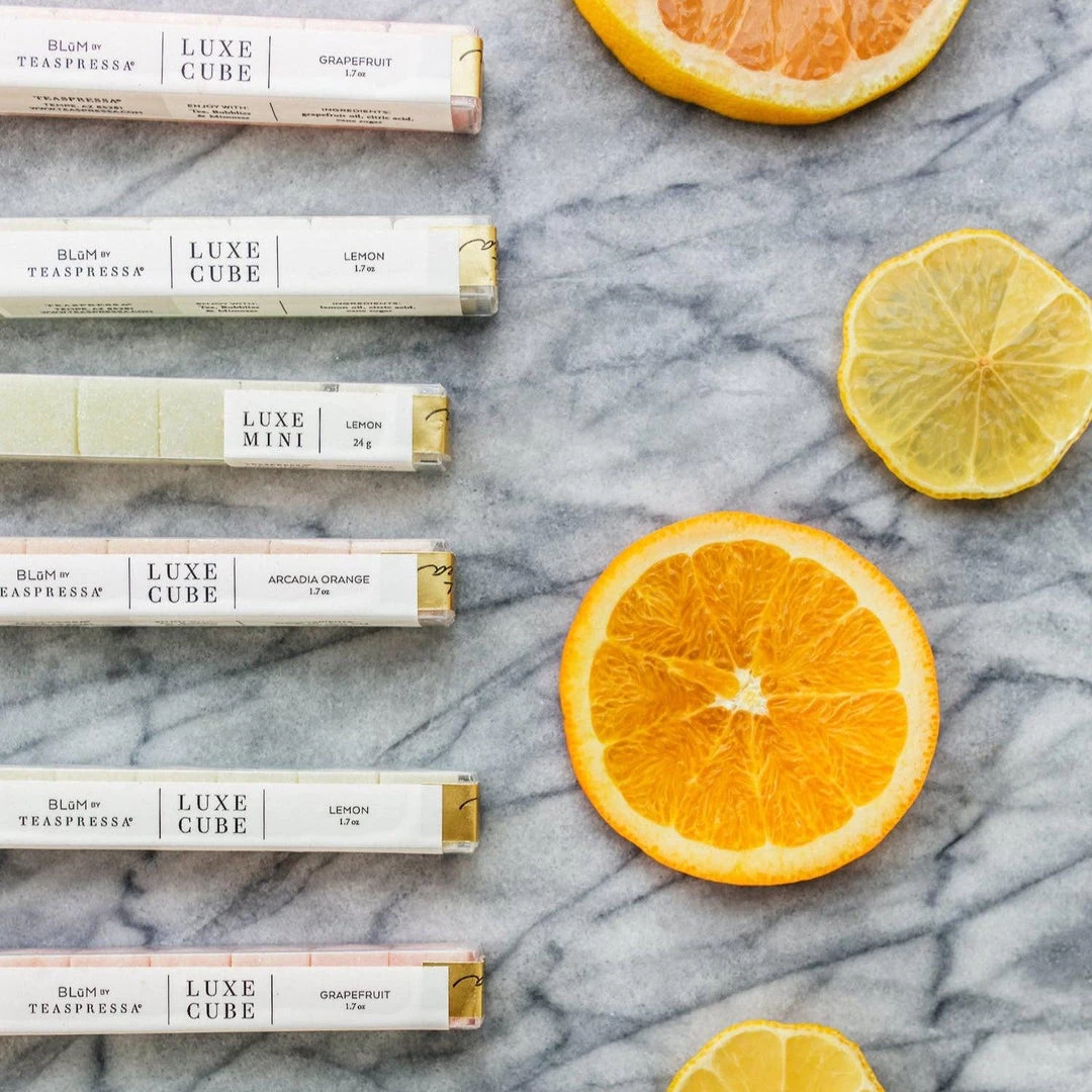 Say ‘hello’ to instant mimosas and ‘bye,bye’ hassle. Create a mimosa or artisan flavored champagne cocktail instantly with our handcrafted, naturally infused flavored sugar cubes. Made with all natural ingredients and containing only 10 calories, enjoy craft bubblies anywhere, anytime! This is a HOT new seller. A complete set of all of our mini LUXE BUBBLIES Sugar Cubes: arcadia orange, lemon, and grapefruit.