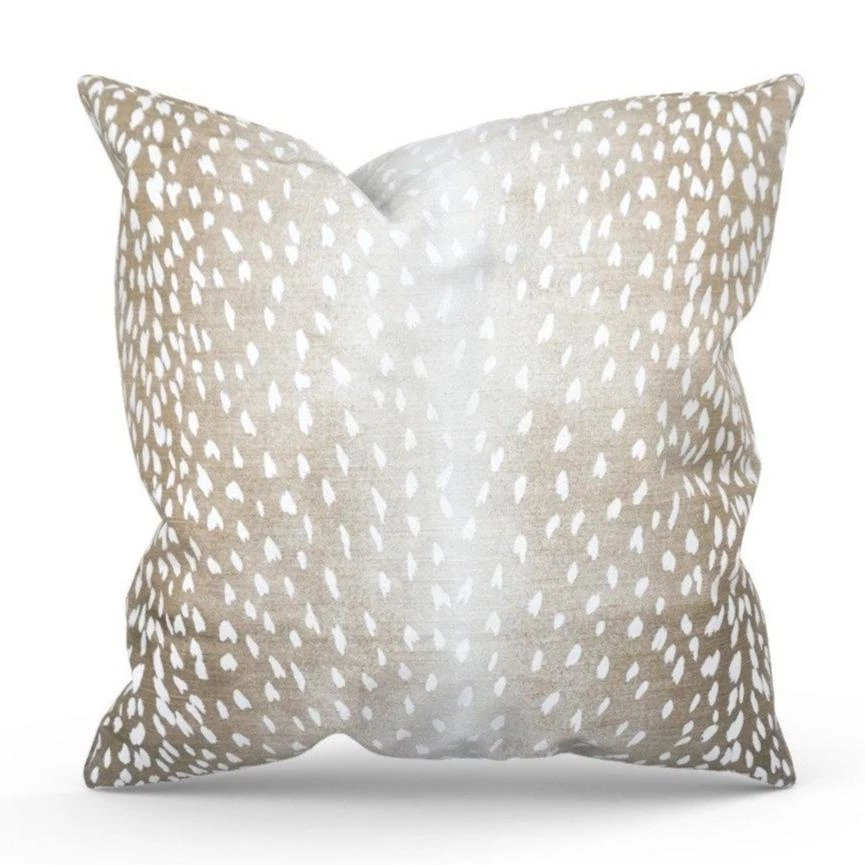 Our Fawn Pillow Cover is an elegant twist for a traditionally “farm” print. This fabric is a light canvas, with a soft and neutral color pallet. Finished with an invisible zipper for easy insert and removal.