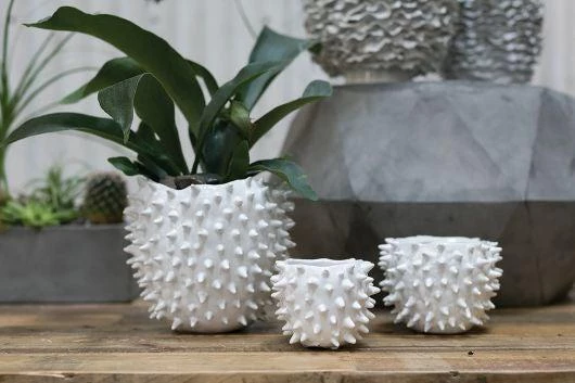 Our cacti pot is the perfect way to add texture and interest to a shelf or vignette of plants! While it’s great for those with a green thumb, it works just as well on its own as an edgy accessory to your styled bookcase.