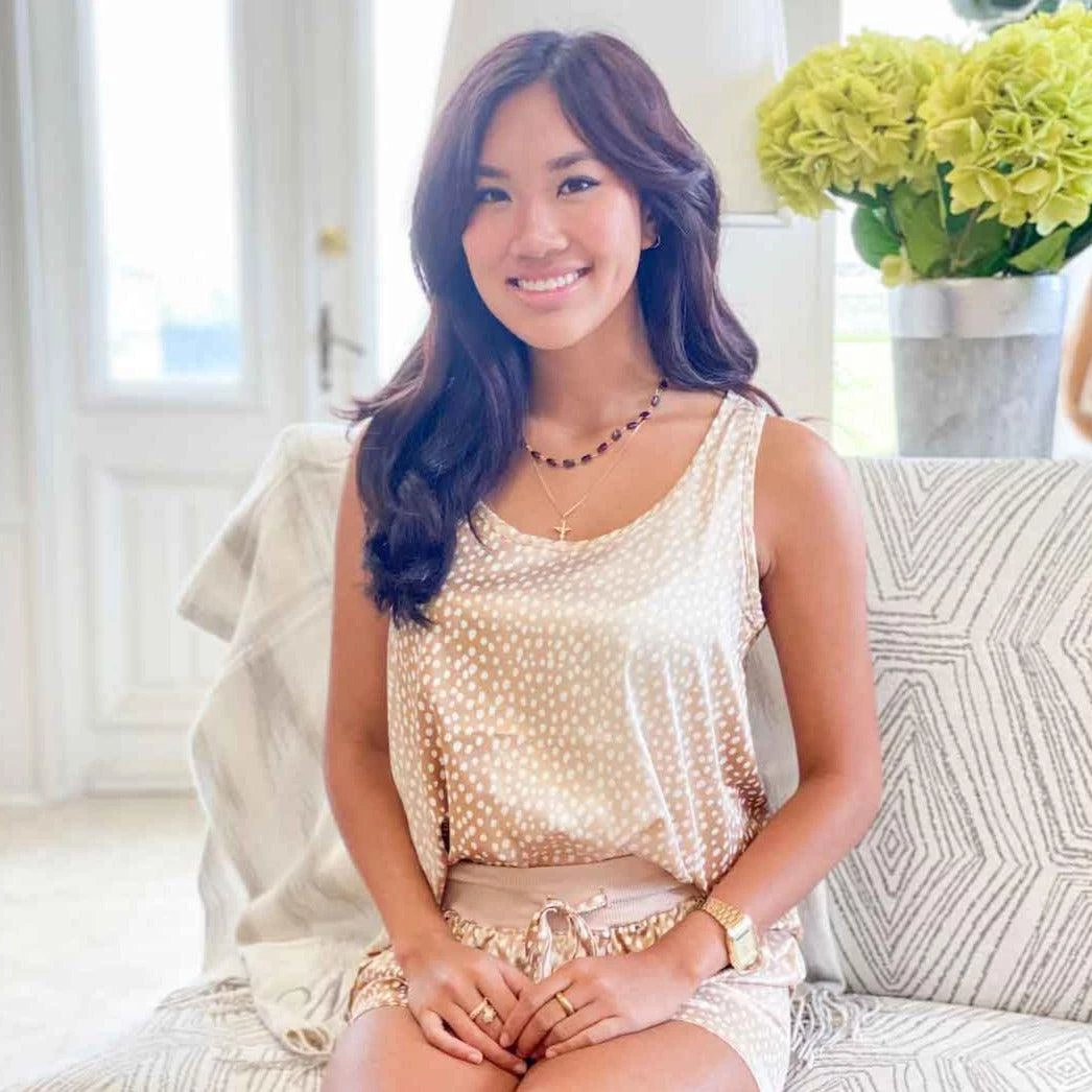 These silky, soft PJSs feature a beautiful fawn pattern perfect for all seasons. Wear alone in the summer, or pair with our fawn robe or ribbed knit pullover for colder nights. This tank has a scoop neck front with a pleated back for an added feminine touch.