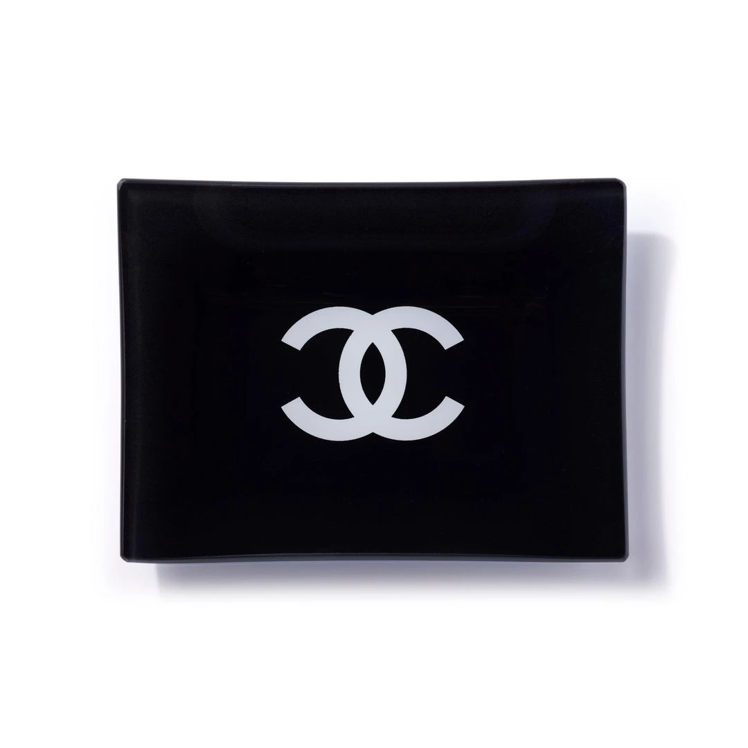 This glass tray is the perfect item to hold your keys, jewelry or just to use as a decorative object in a room. It certainly makes a statement and is the perfect home accessory for the fashion-forward.