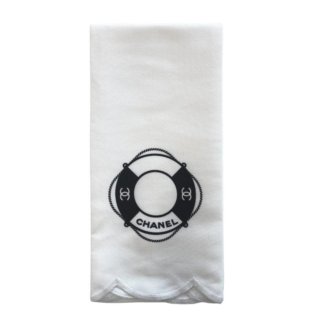 This designer-inspired hand towel is a playful accent to a modern powder room or kitchen! Accentuate your feminine touch with the scalloped hem and classic design. Enjoy for yourself or give as a hostess gift!