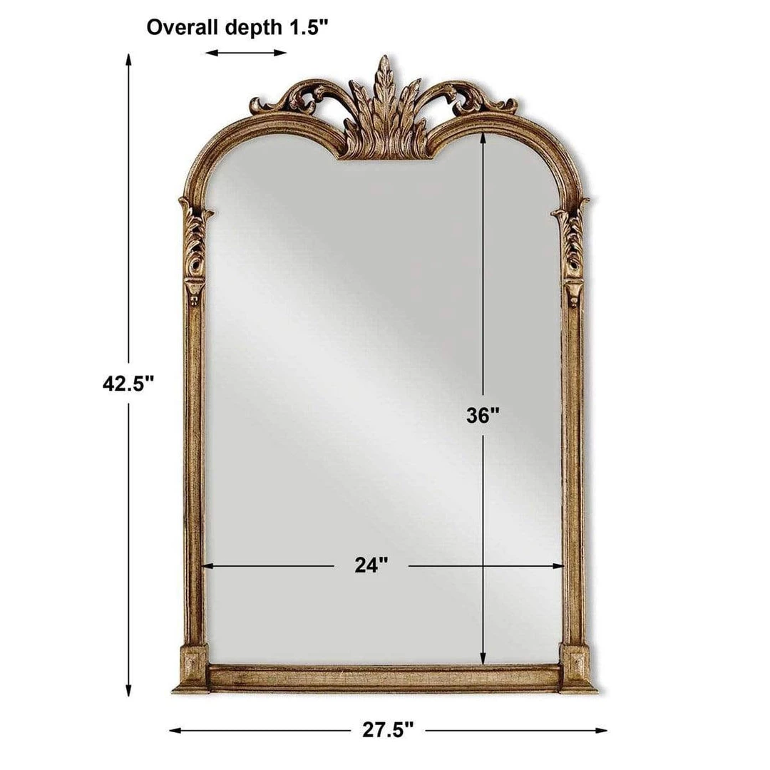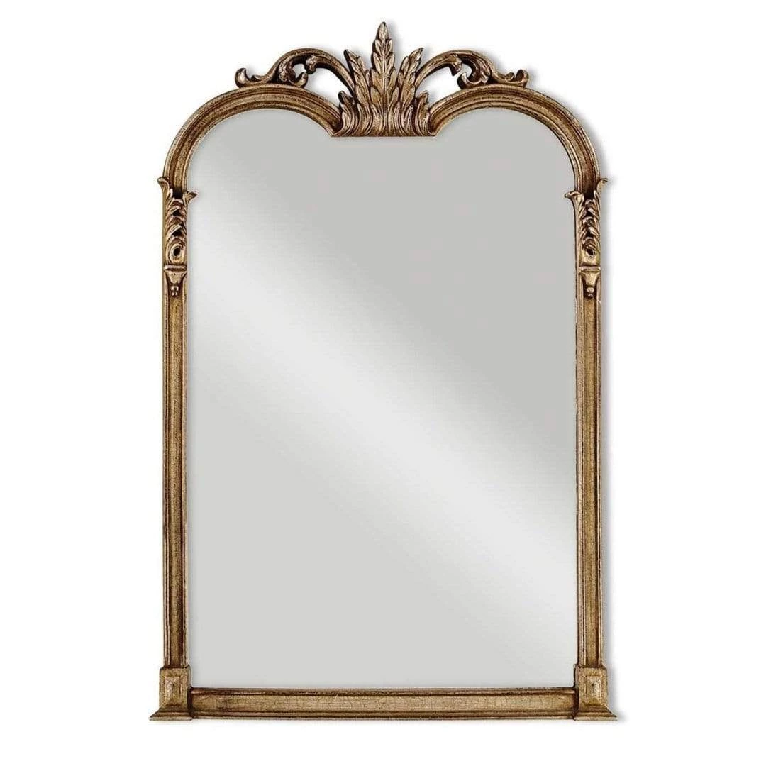 This mirror frame is finished in a bronze & champagne silver leaf that has been crackled and antiqued so the dark undercoat shows through the leafing.
