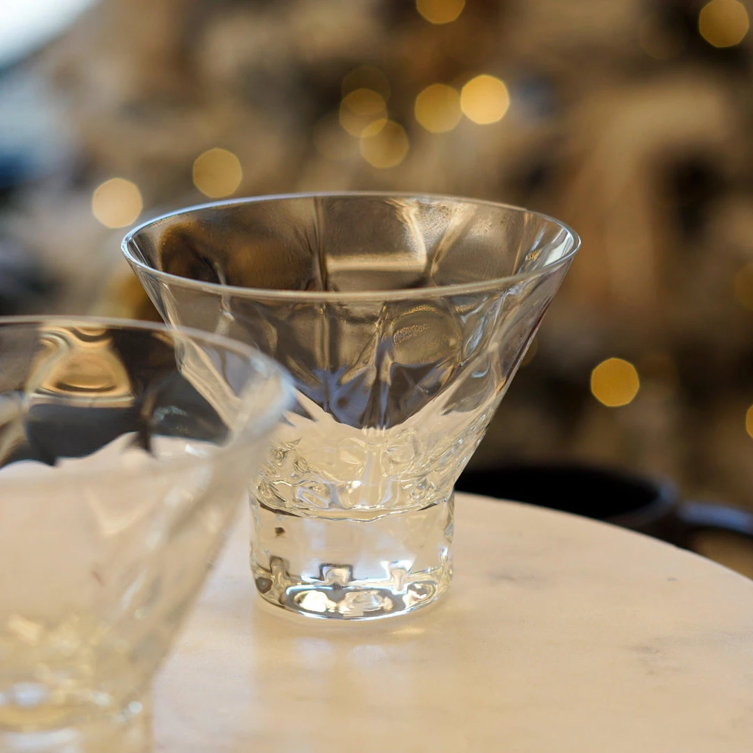 Clean, modern lines and geometric facets give a sleek feel to the classic martini glass, enhancing your sipping experience. What better accompaniment to cocktail hour?